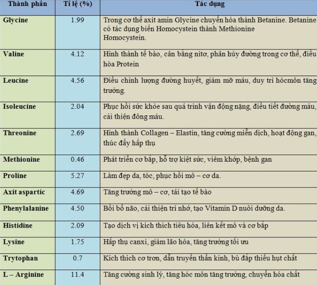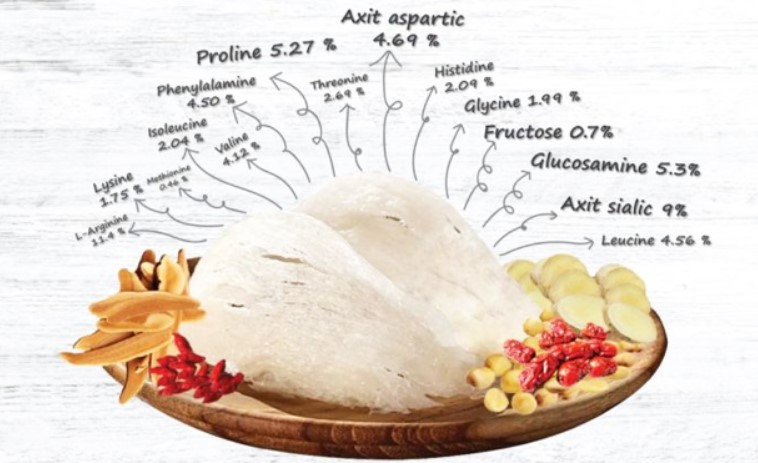 Bên cạnh acid sialic, yến sào còn chứa hơn 18 loại acid amin khác như: